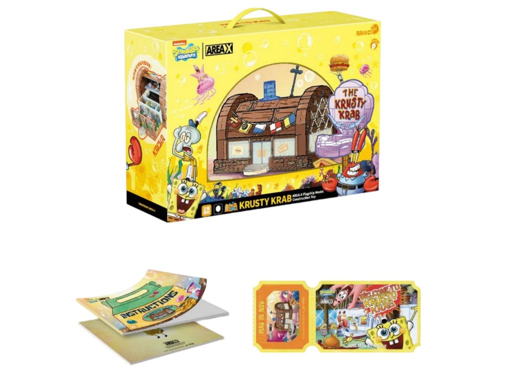Figurky: Součástí sady jsou klíčové postavy: SpongeBob, nejoblíbenější kuchař pod vodou; pan Krabs, chamtivý, ale dobrácký majitel; a Sépiák Chobotnice, neustále mrzutý pokladník.